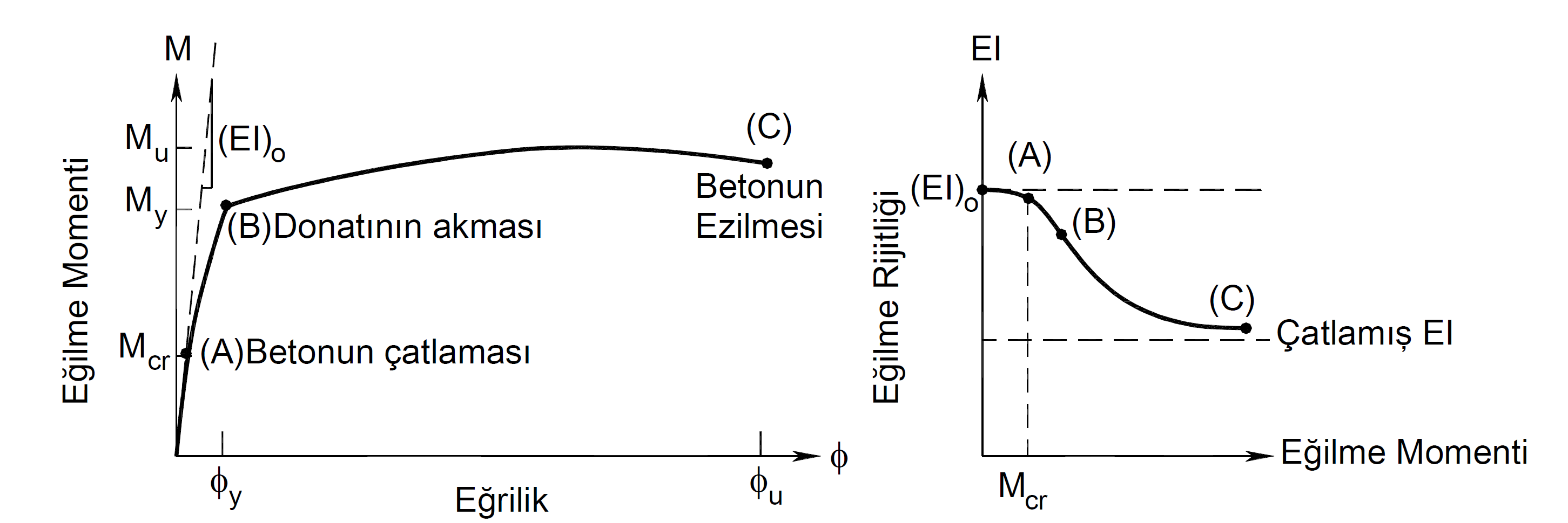 Burada ϕy plastik mafsal kesitinde ilgili yöndeki etkin akma eğriliğini göstermektedir. Moment-eğrilik bağıntısı hesaplanan bir plastik mafsalda etkin akma eğriliği, çekme donatısının aktığı noktadaki eğrilik anlamına gelmektedir. Yukarıdaki resimde ( B ) ile gösterilen noktadaki eğrilik değeridir. (Concentrated Plasticity Model )