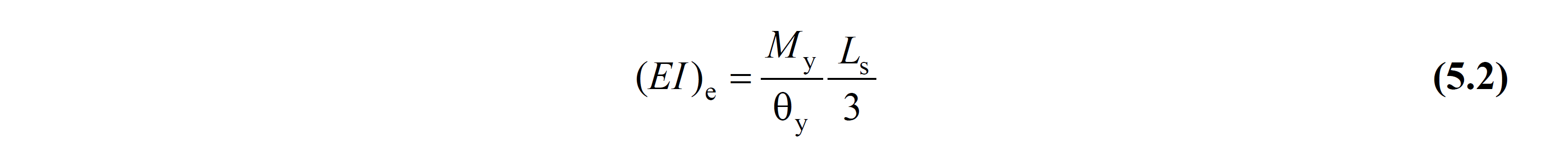 Here, M y and θ y show the average of the effective yield moments and yield rotation of the plastic hinges at the ends of the rod element . L s is the shear gap (ratio of moment / shear force in cross section); It can be taken as approximately half the span in columns and beams, and half the distance from the base of each floor to the top of the curtain for curtains. The rotation of plastic hinge flow θ y in Equation (5.2) shall be calculated by Equation (5.3) :