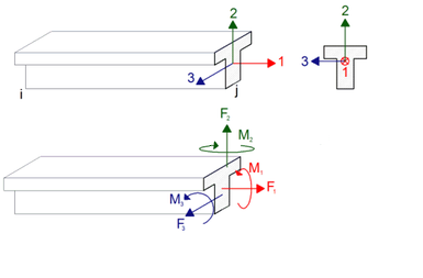 Looking at a beam in the plan is the axis 1 axis parallel to the beam, and the perpendicular axis 3 axis to it in the planand the vertical axis perpendicular to the working plane should be considered as the 2 axis. Left end is i, right end is j.