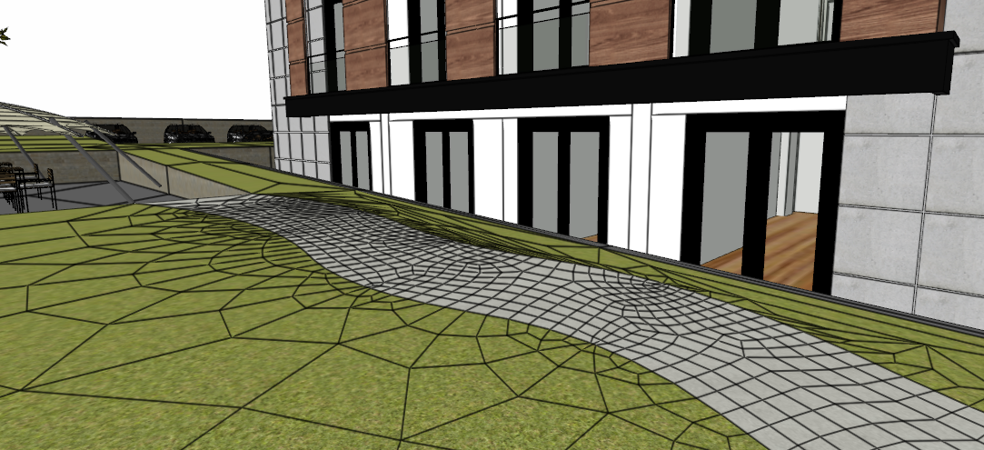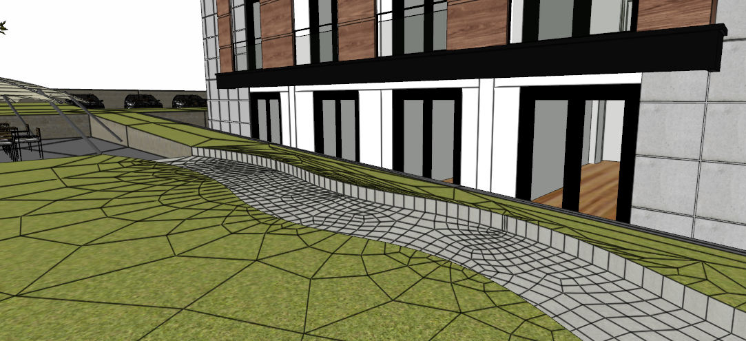 With the elevation feature in the sub-region which is the terrain sub-object, areas at different elevations are created by using the slope of the terrain in landscaping.