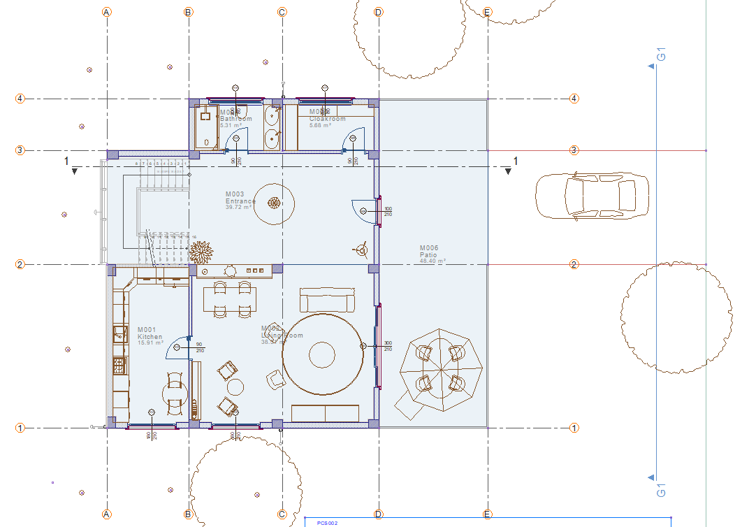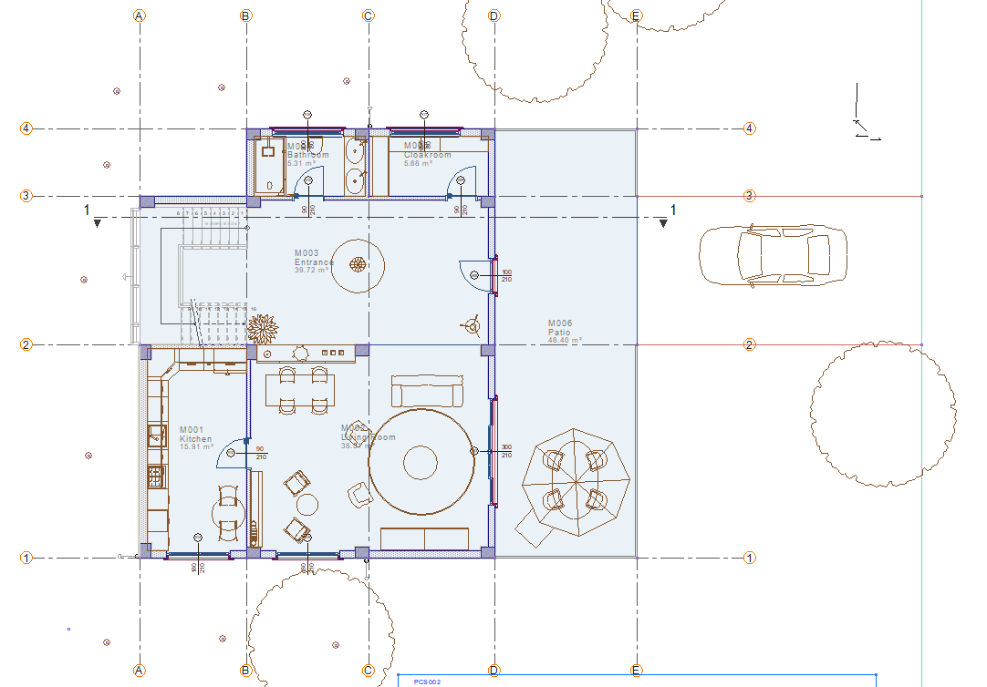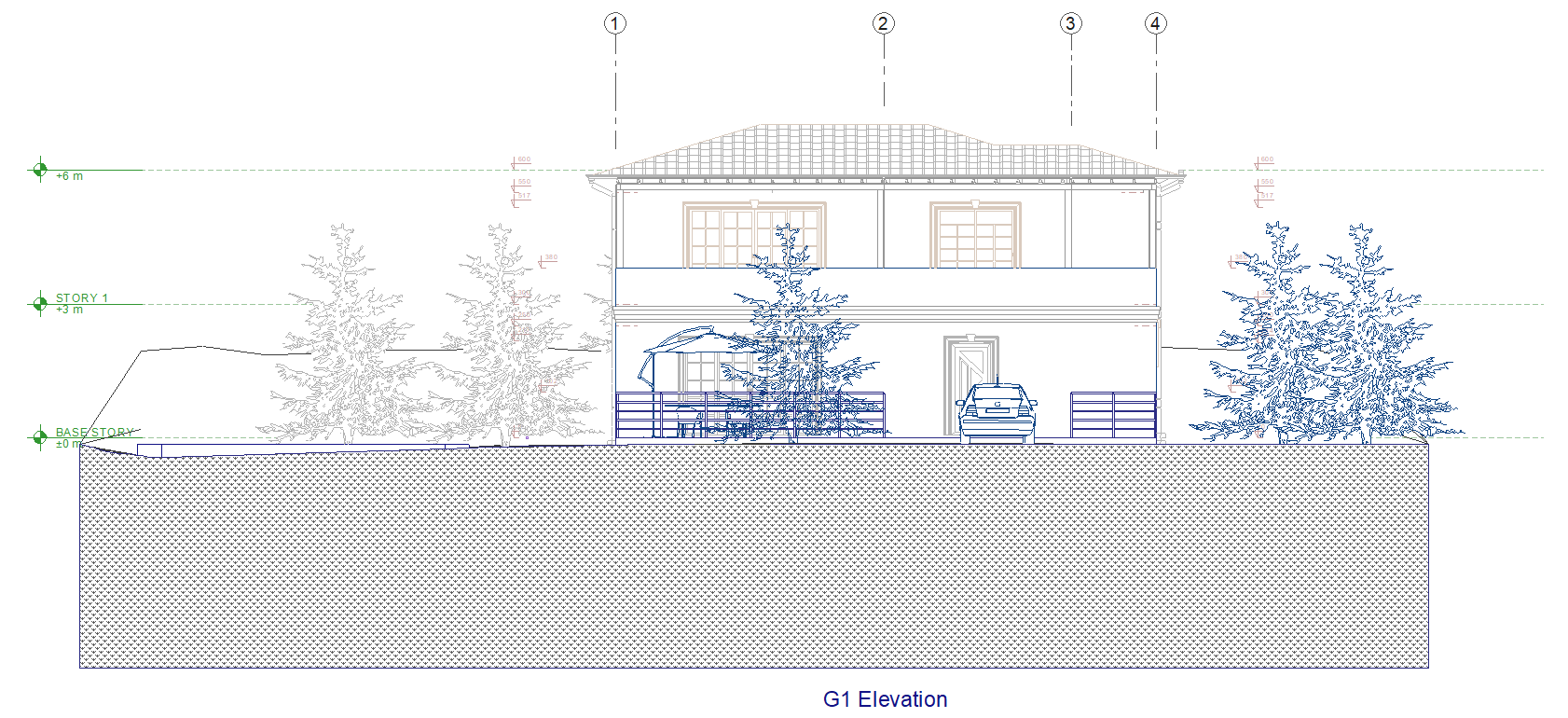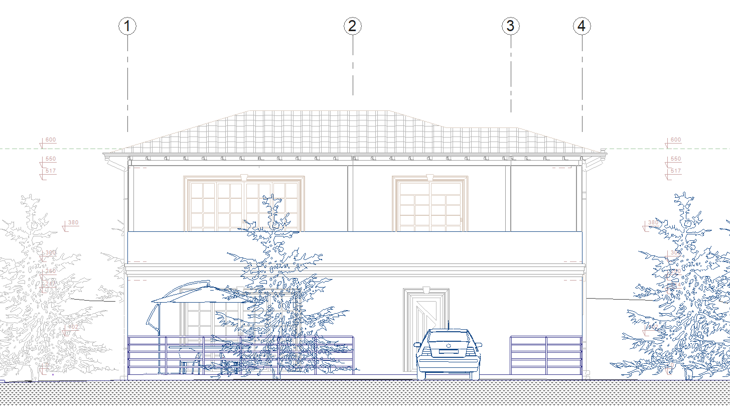 With the Elevation Line command, automatic view drawings are created according to the line passed outside the building. All objects that are in the plane according to the location of the drawn line are considered as cut objects, and other objects in front of the plane are considered as visible objects. ideCAD automatically separates the section and the elevation, but the section line should be drawn if a section is desired, and the elevation line should be drawn if a elevation is desired.