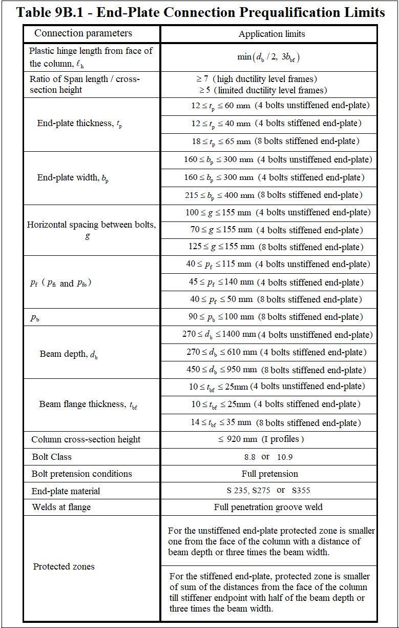 In the end plate connection, plastic hinges cause inelastic bending deformations in the beam and column panel zone. Therefore, strong connection, strong column and weak beam design are considered a basis. For this reason, the length of the plastic hinge and its distance from the column face is specifically checked from the table below: