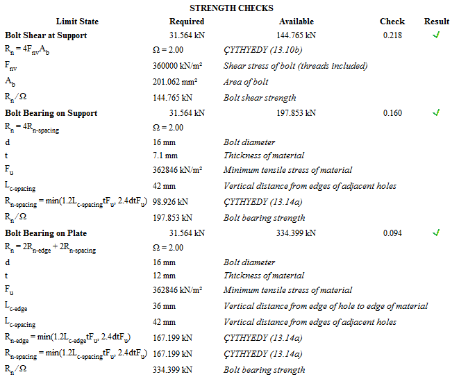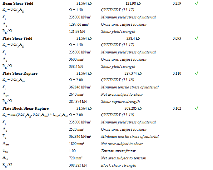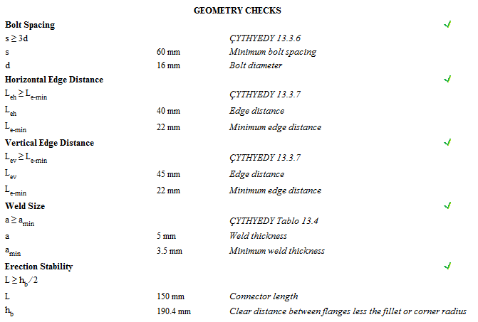 In the front plate slip joint report , the controls of the joint designed according to the Design, Calculation and Construction Principles of Steel Structures (ÇYTHYEDY) (GKT and YDKT) or AISC 360-16 (ASD and LRFD) regulations are given.