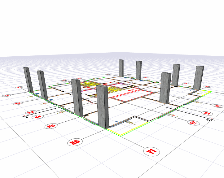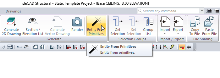 With the Entity From Primitives command, two-dimensional drawings saved as dxf/dwg are converted into ideCAD objects. Drawings such as axes, columns, beams, walls and shearwalls must be drawn on their own layers. Drawings on the selected layers are converted to objects.