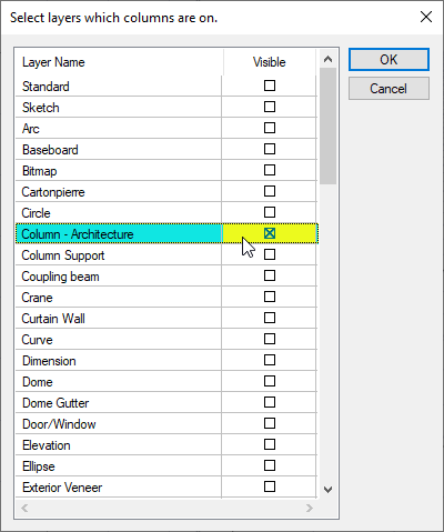 Select the layer -column-layer of the drawings you want to convert from the pop-up window.