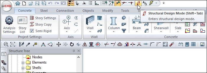Switch to the structural plan view by clicking the Structural Design Mode command.