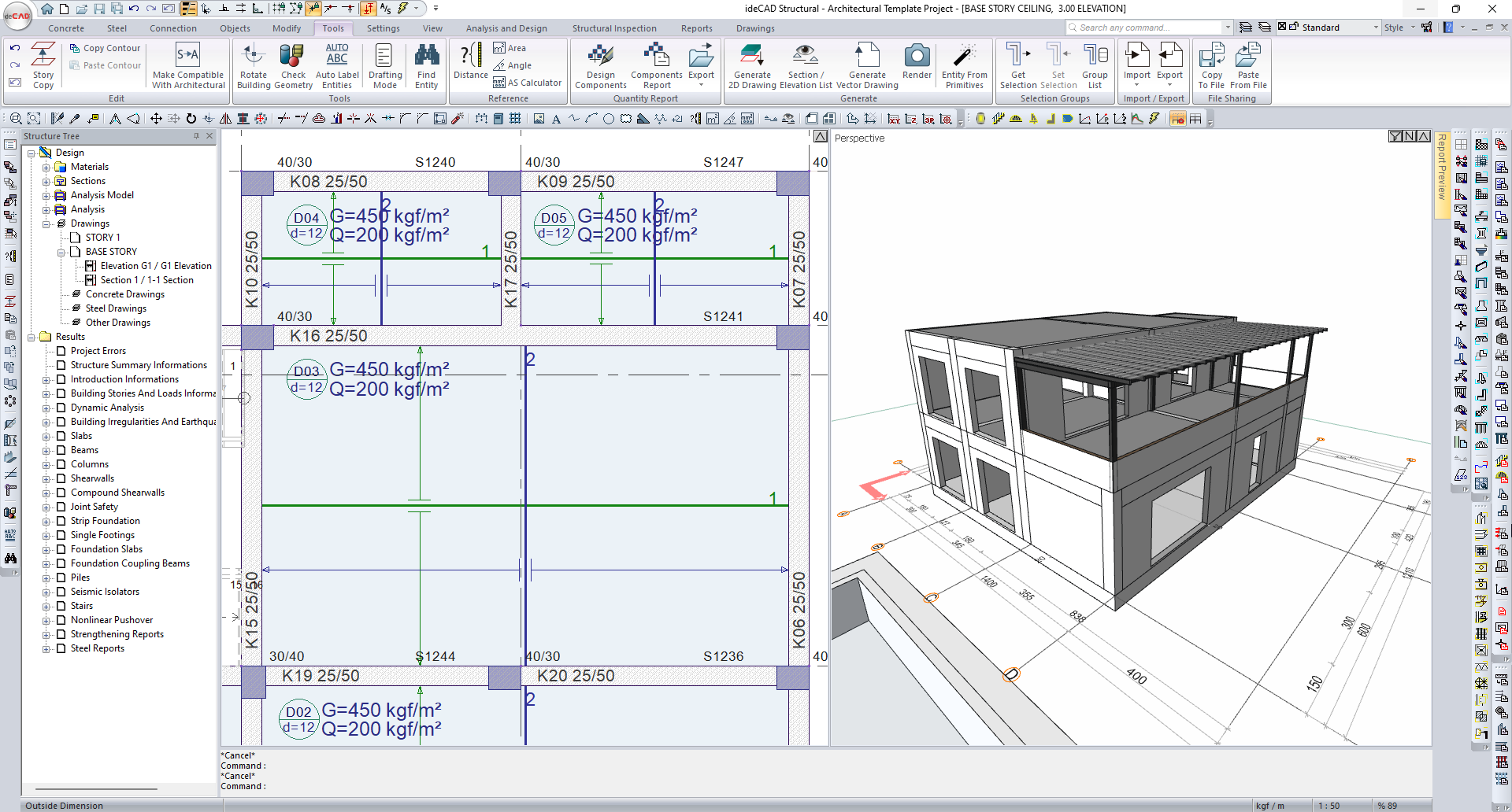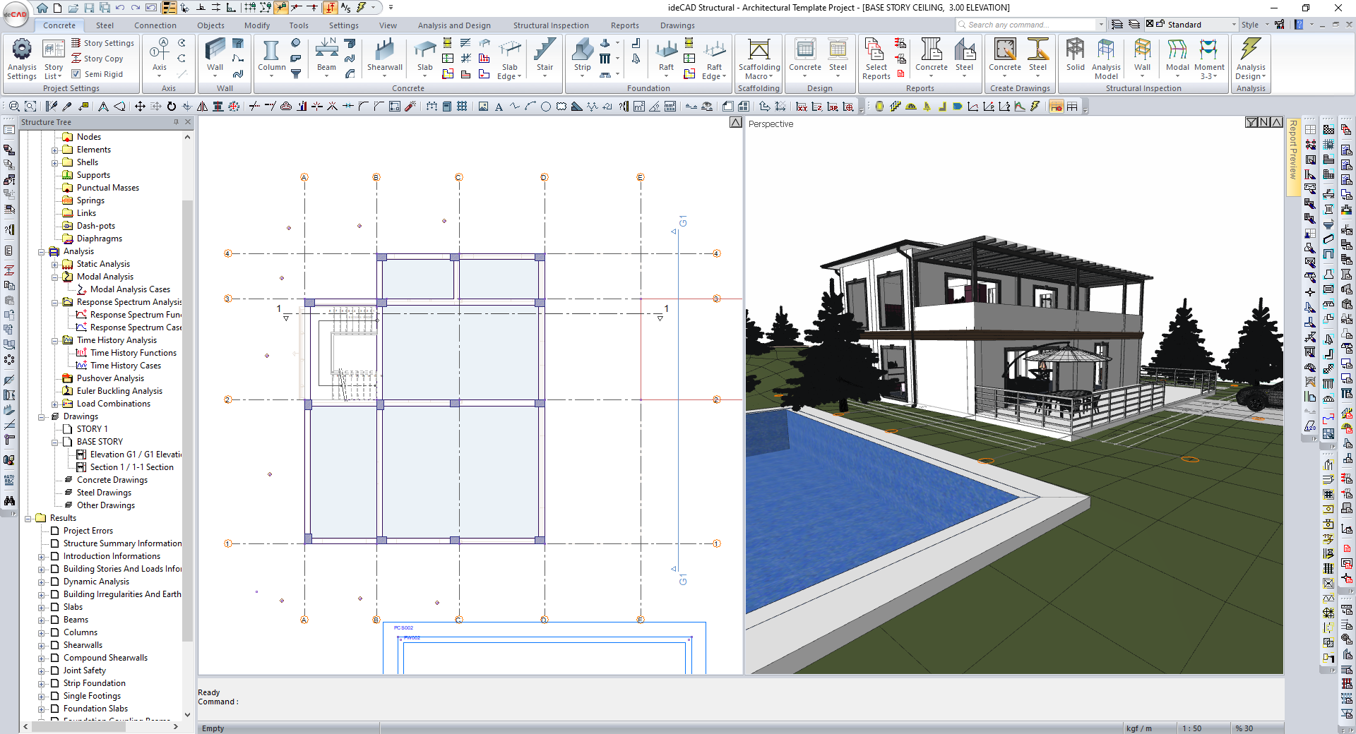 The architectural details will be closed and the Formwork Plan will be opened.