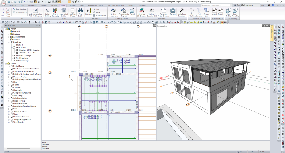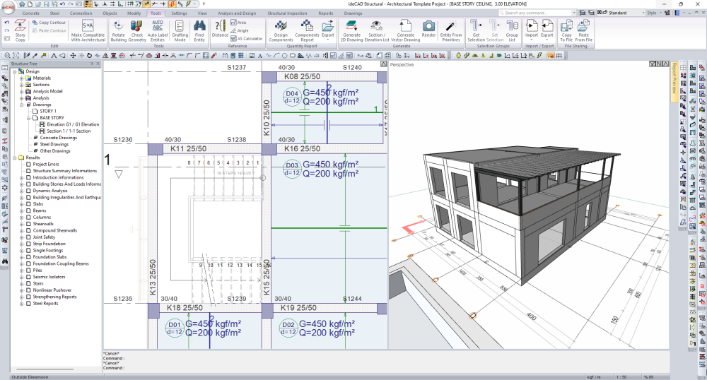 Open the file prepared with ideCAD Architectural with the ideCAD Structural program.