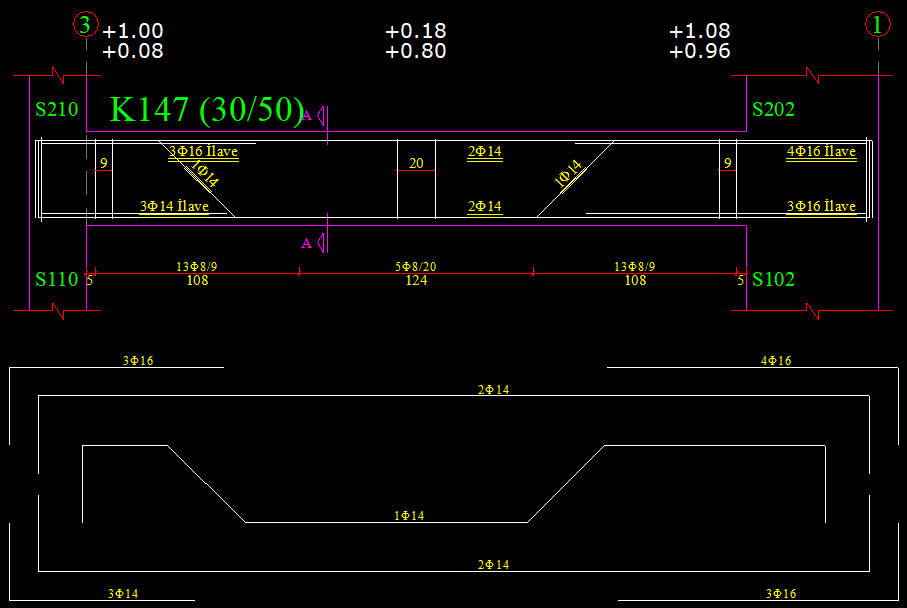 Left support upper reinforcement pieces of the beam 3fi16 + 3fi14