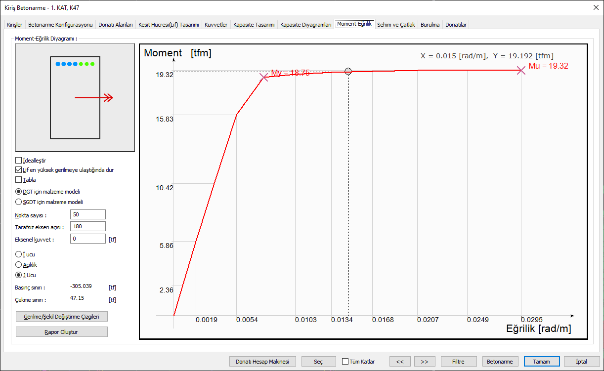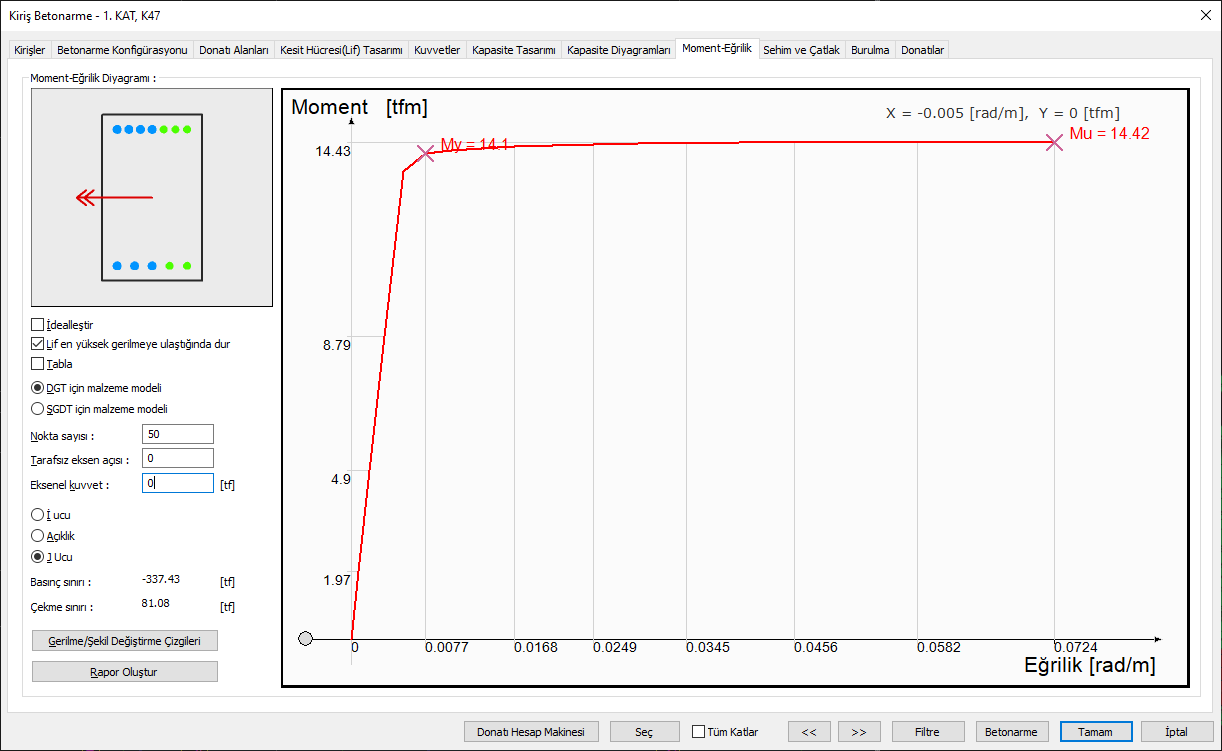 The beam bearing strength moments are the value corresponding to Mu from the moment curvature diagram according to the DGT material model.