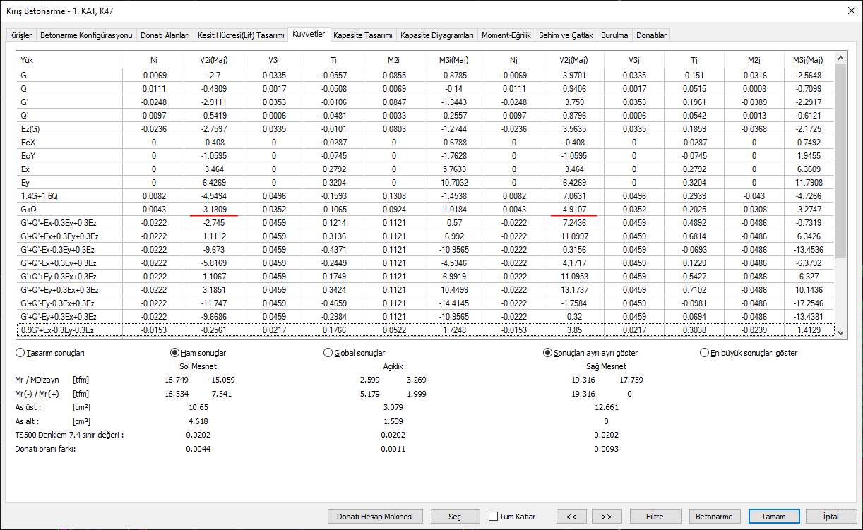 For loading combinations that do not contain earthquake loads, the upper limit of shear force control given in TS500 Equation 8.7 and calculated to prevent crushing of the body concrete is done with the following steps.