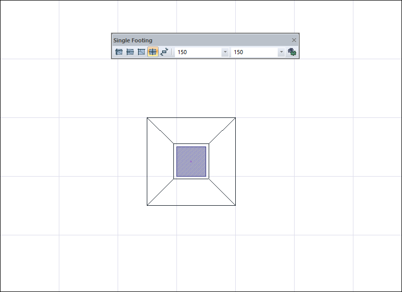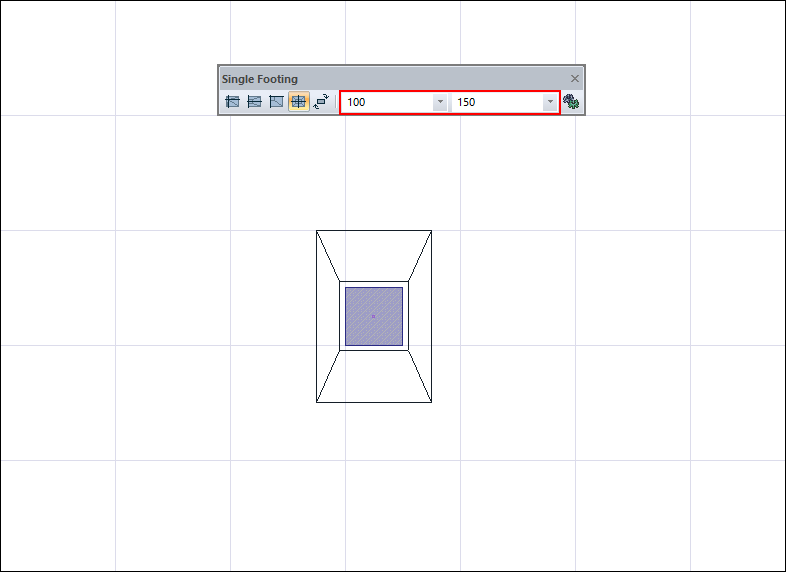 Enter the dimensions of the single footing in the size boxes in the single footing toolbar. As you enter a value, the preview of your single footing will change.