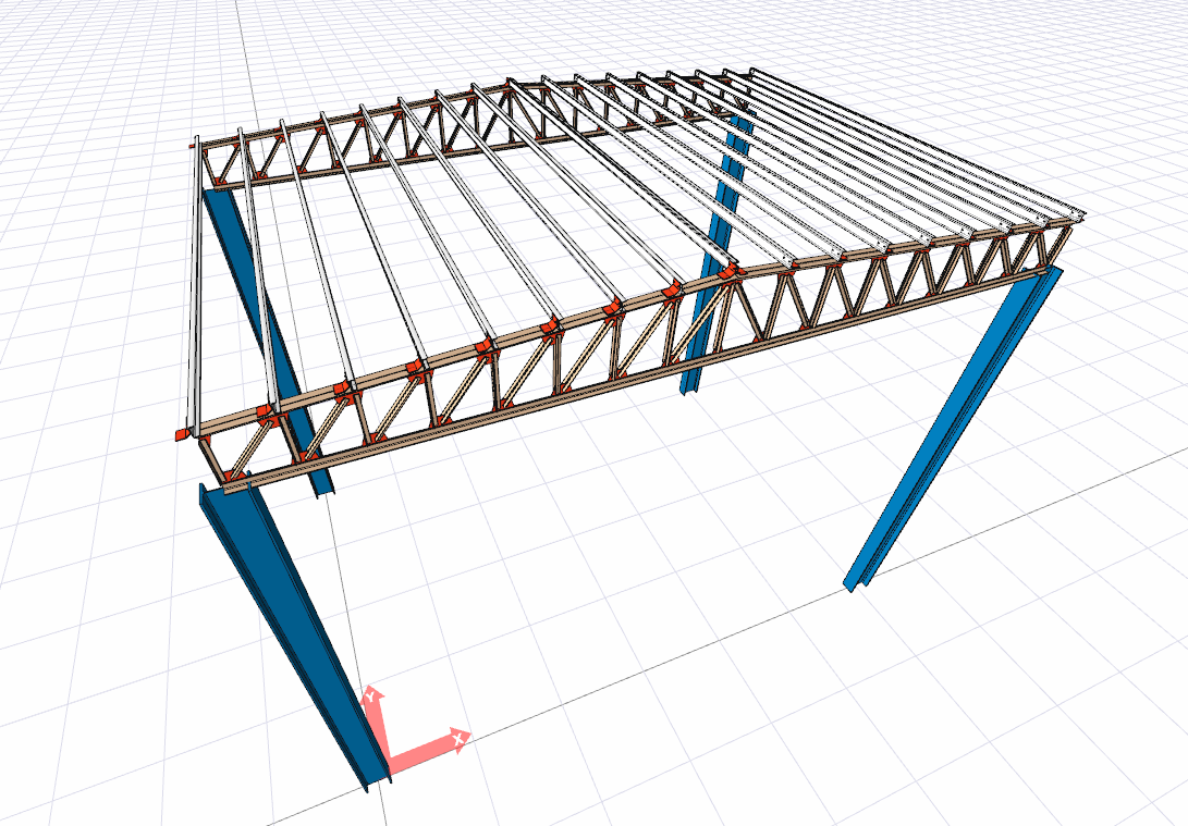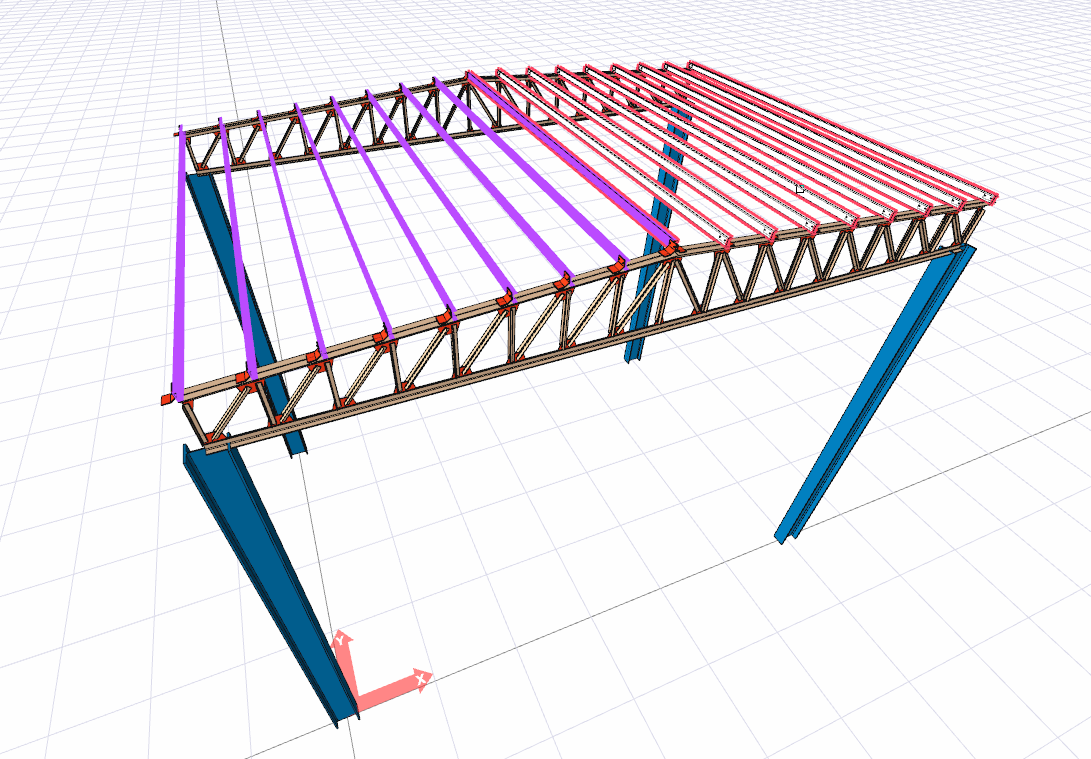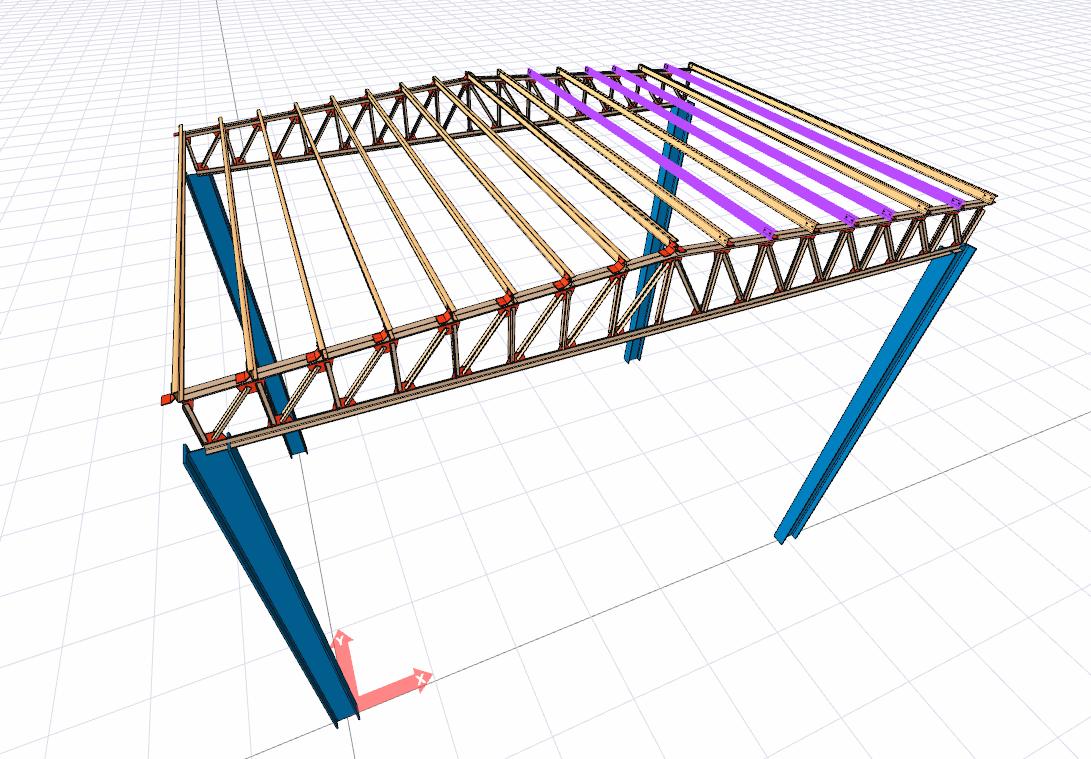 Purlin and secondary beam elements in groups are converted into single elements with the Explode into Single Elements command.