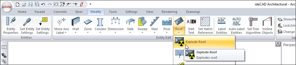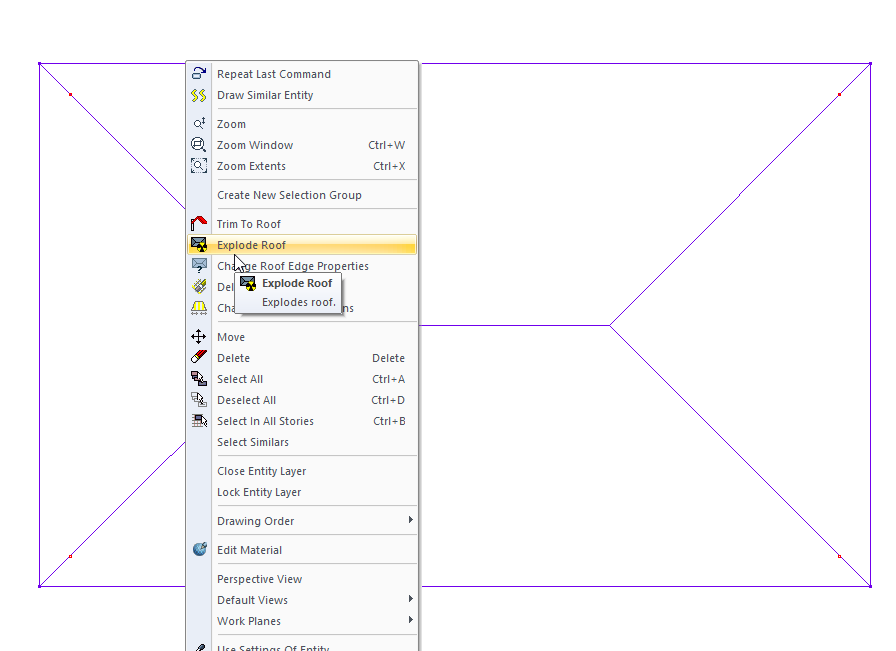 Clicking the explode roof line by clicking the right mouse button ![]() |