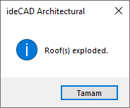 With the Explode Roof command, the roof surfaces created with the roof command are separated. It is used if it is wanted to intervene separately on the surfaces of the roof.