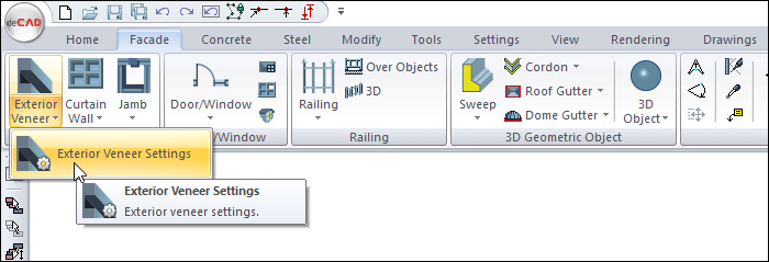Location of the Exterior Veneer Settings Command