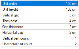 With the Exterior Veneer Settings command, the current exterior veneer type, height, material, unit dimensions settings can be accessed.
