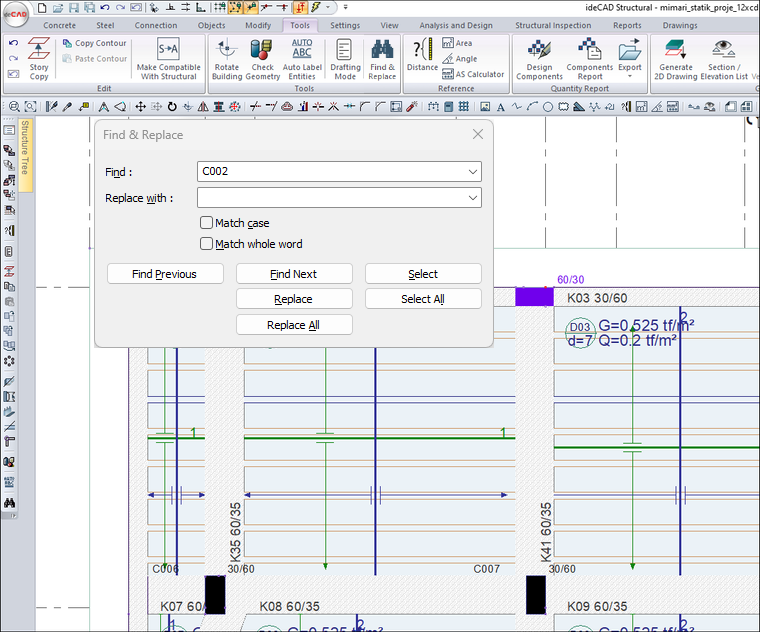 Click the Find & Replace icon on the left toolbar or the Tools/Find & Replace icon from the Ribbon menu or press the Ctrl + F key.