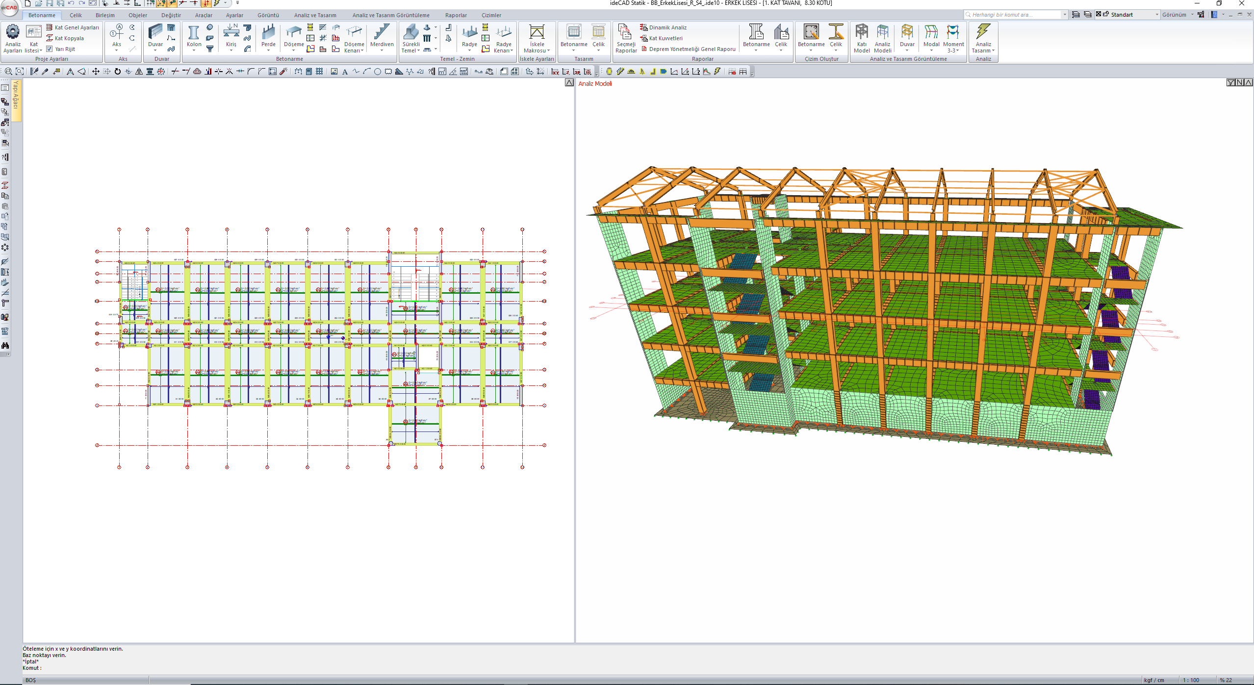 Beams and columns are automatically modeled as frame (bar) finite elements.