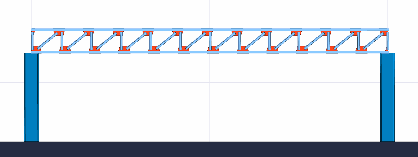 After you have determined the first point of the truss, put the cursor on the second column and create your second point. The program will create trusses.