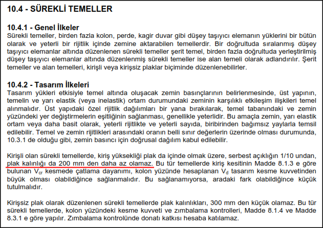 Continuous foundation ampathom height cannot be less than 200mm. (TS500 10.4.2)