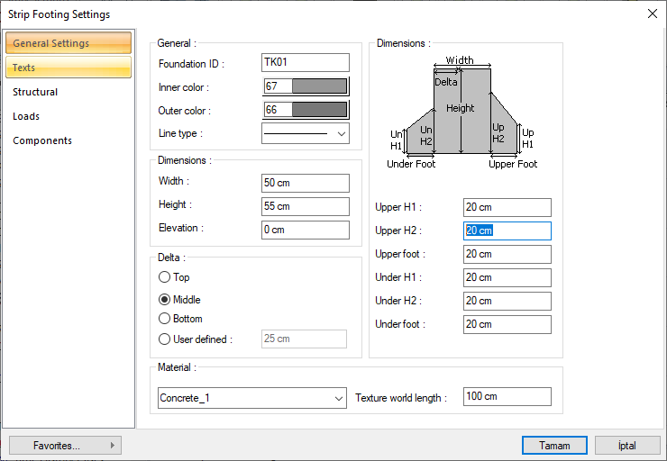 In the General Settings tab, enter at least 20 cm in the Upper H2 and Under H2 lines and click the OK button.