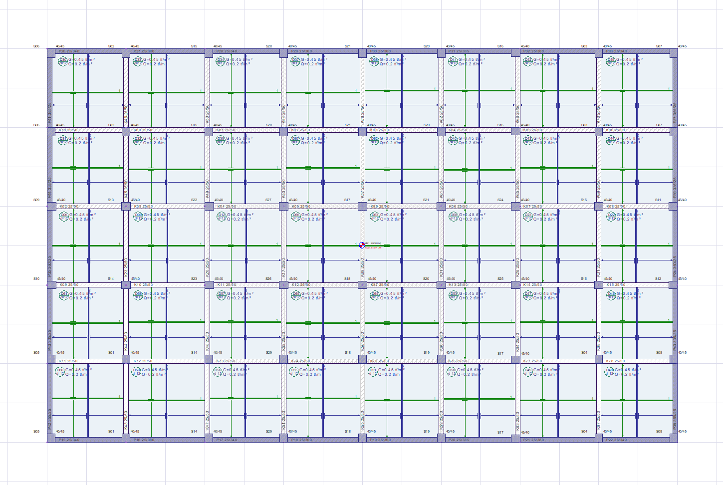 In rigid basement floors, basement curtains are more rigid than other parts of the building. For this reason, the stresses of the floors connected to the basement perimeter curtains are higher than the other floors. As explained in 4.5.7.2, transition floor floors are modeled with two-dimensional finite elements using the semi-rigid diagram solution. In the in-plane floor stresses that occur as a result of this modeling, the stresses transferred to the rigid basement perimeter walls in the transition floor floors occur. The plan view of a building on the transition floor is given in the image below.