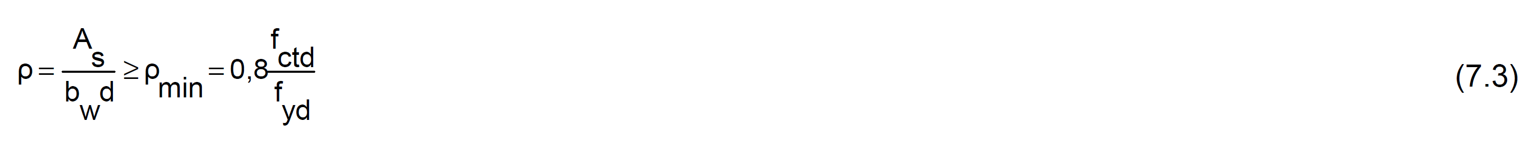 Equation 7.3 given in 7.3 of TS 500 is used when applying minimum tensile reinforcement ratio control in continuous foundations . In these relations, ρ is tensile reinforcement ratio, A s tensile reinforcement cross-sectional area, b w beam body width and d beam useful height.