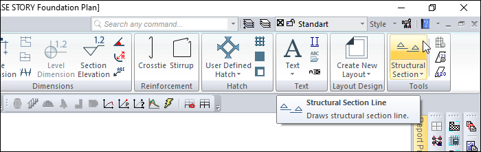 Click on the line Structural Section Line under the tools heading of the Drawings tab .
