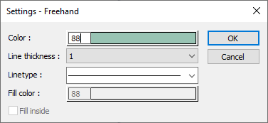 Line thickness ![]() Line thickness is selected. The appropriate thickness is selected from the drop-down list when the down arrow button next to the box is clicked. The thickness selected here is only valid on the screen. It does not affect drawing printouts. |