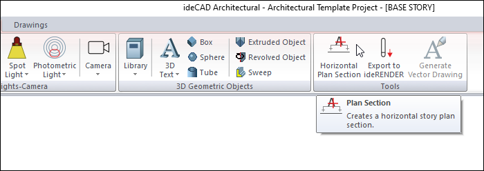 Click the Horizontal Plan Section icon. The horizontal plan section toolbar will open.