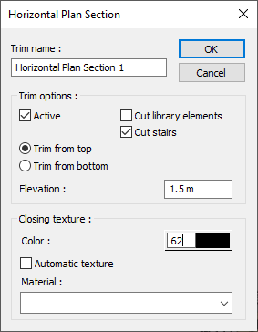 When you click the New Horizontal Plan Section icon from the toolbar, the Horizontal Plan Section dialog will open.