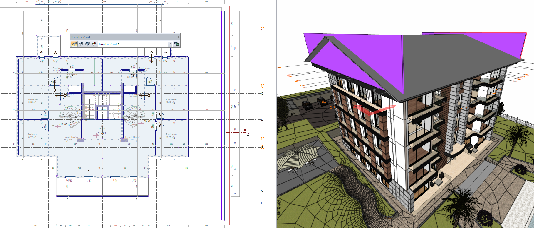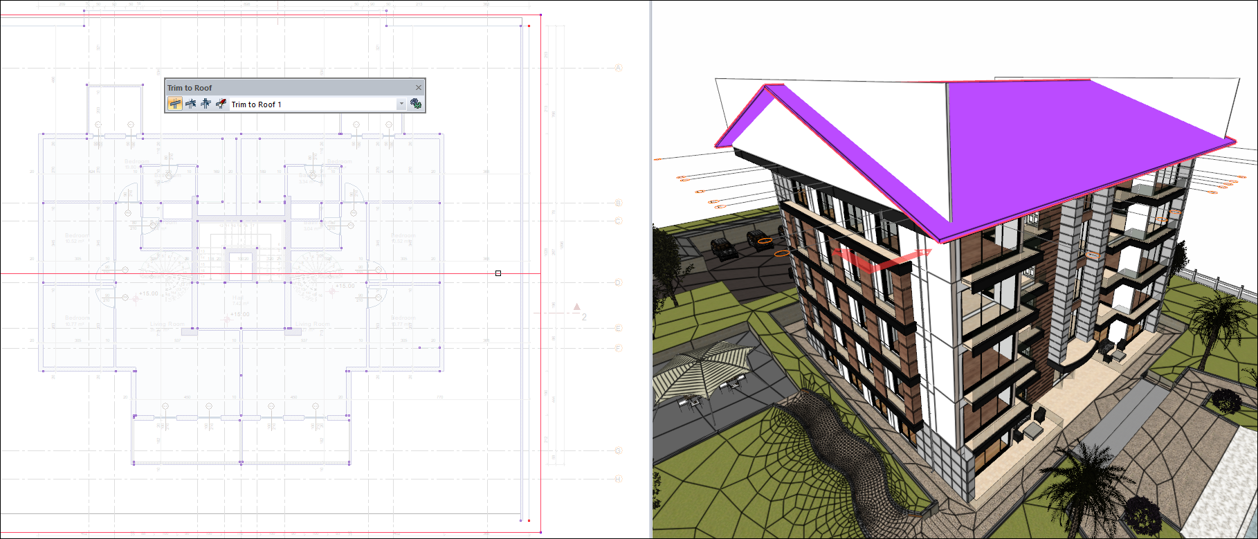 Click the Home/Roof/Roof/Trim to Roof icon in the ribbon menu. The Trim to Roof toolbar will open.