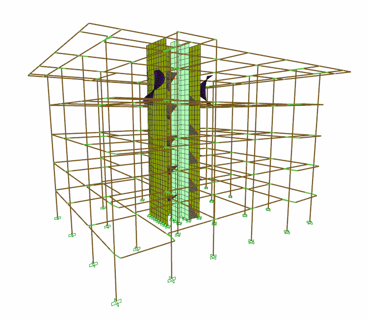 With the Generate Analysis System command, an analysis system is created using finite elements and analysis can be made on the analysis model. When the Analysis+Design command is used, the pre-analysis analysis system is automatically created. The Generate Analysis System command gives the opportunity to examine the rod and shell finite elements and connection (link) elements created in accordance with the solid model before analysis+design.