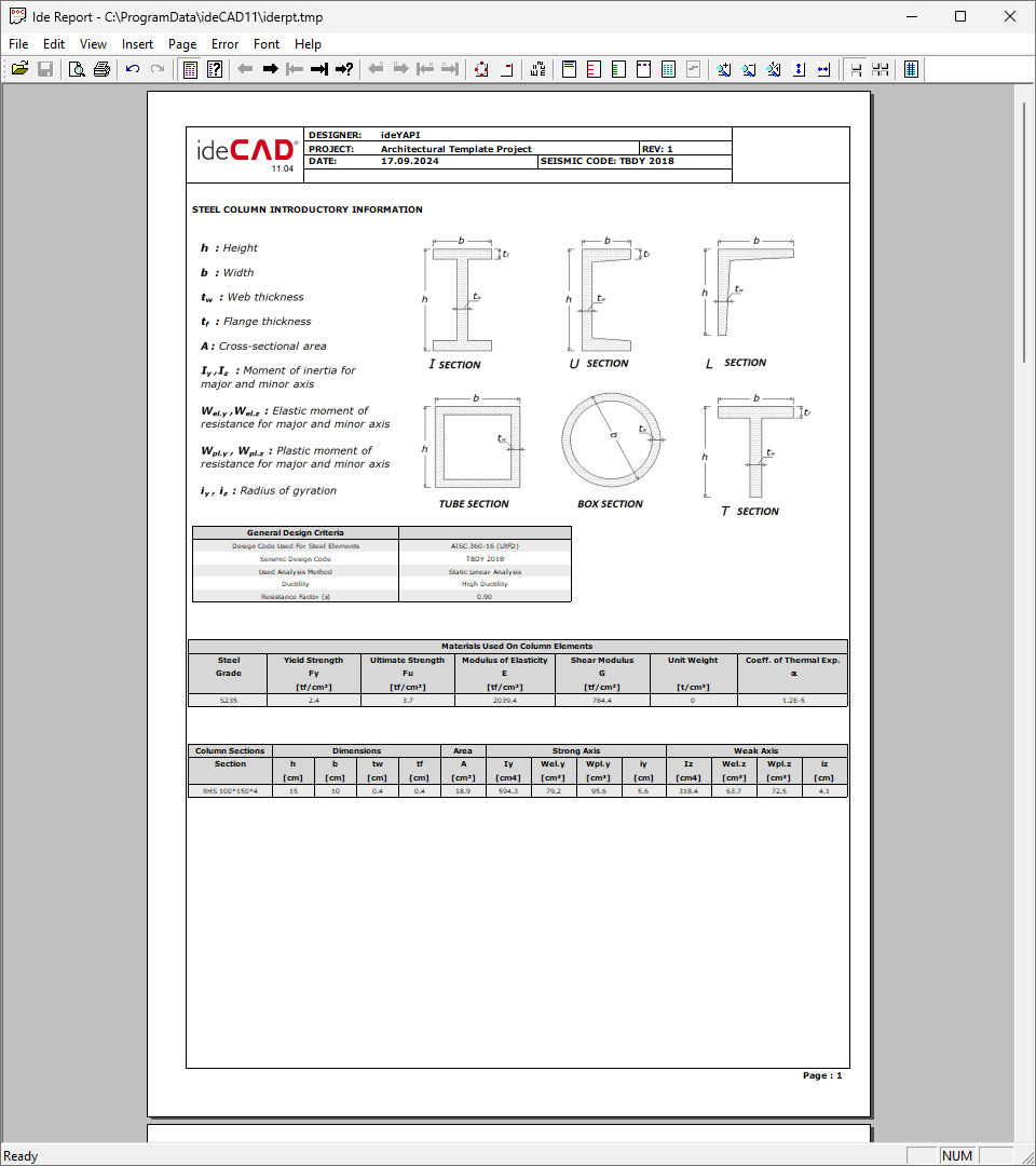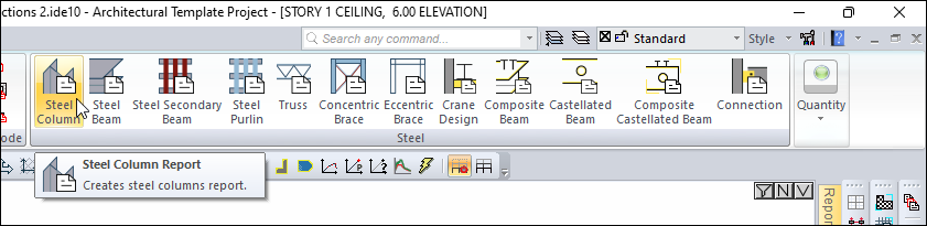 Steel column reports will be opened in the ide Report.
