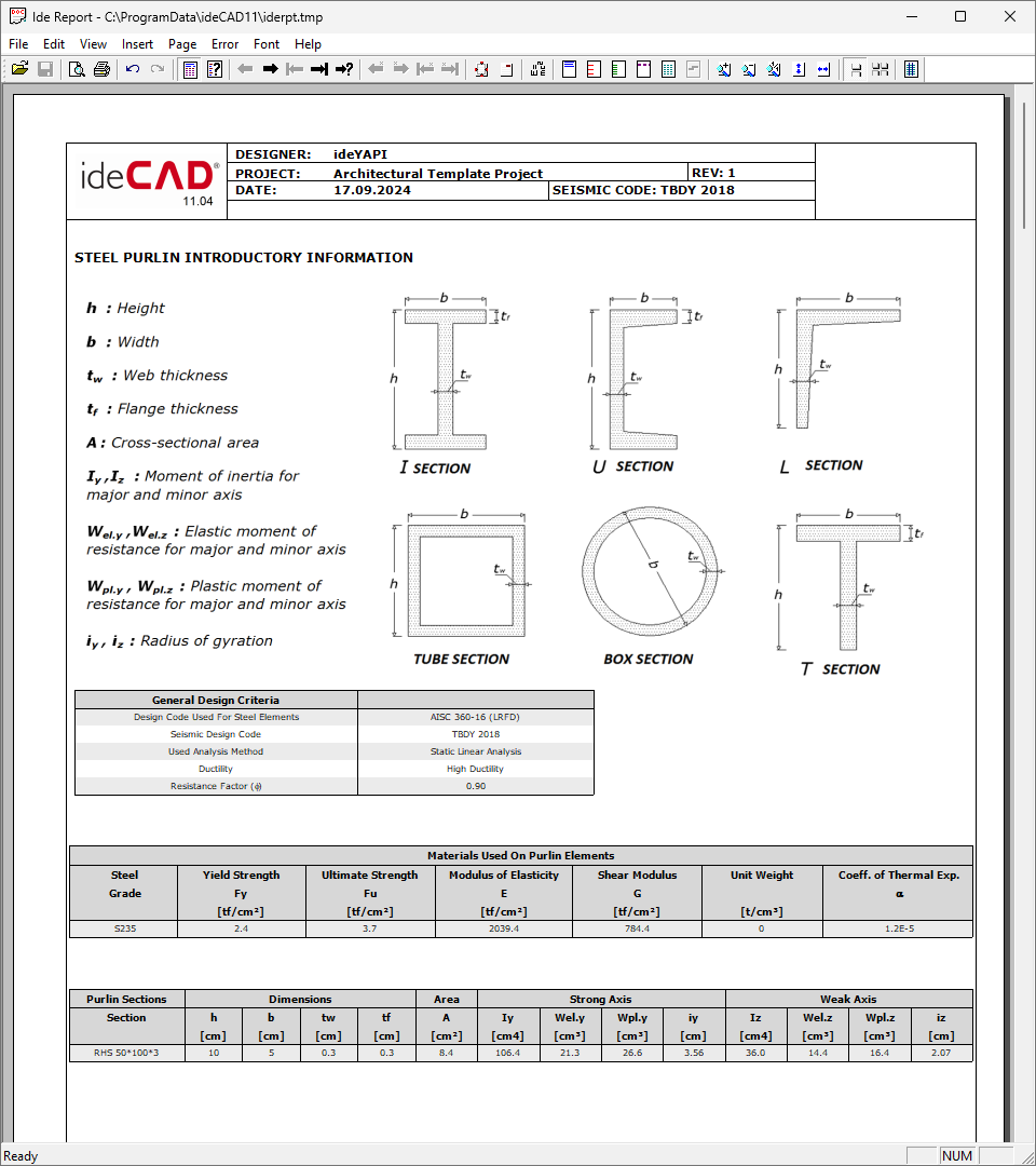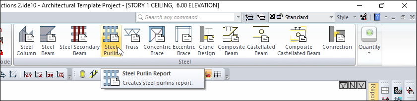 Steel purlin reports will be opened in the ide Report.
