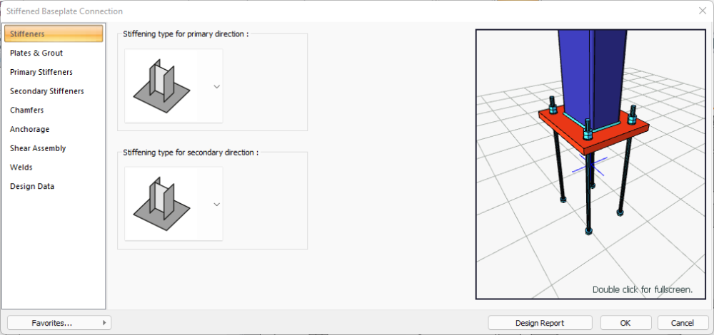 The Stiffened Baseplate Connection dialog will open.