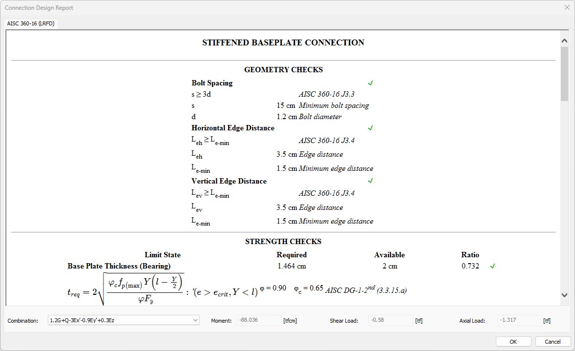 The connection design report dialog will open.