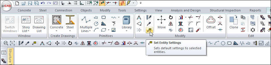 Click the Get Entity Settings command in the Modify section under the Drawings menu.