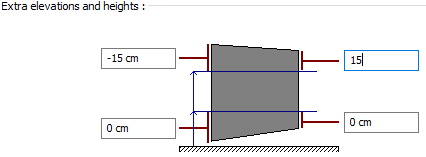 Sloping walls are created by giving an extra elevation to the wall corner points and changing the heights of the wall corner points.