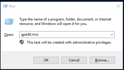Type gpedit.msc in the Open entry and then press the Enter key or click the [OK] button