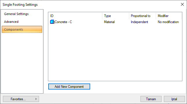 Height | It means that the length of the material will be found by multiplying the length measurement found when defining the material and the height of the single footing. | |