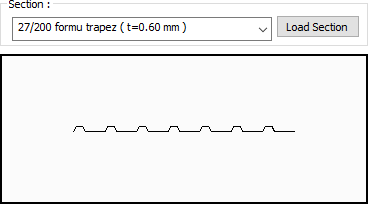 Section ![]() The profile used appears. One of the previously defined profiles can be selected by clicking the list, or a new profile can be selected from the dialog that opens when the Load Section button is clicked. |