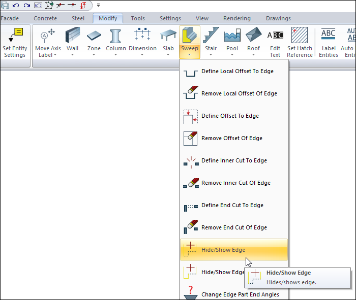 Hide/Show Edge command hides or shows an edge of the sweep.
