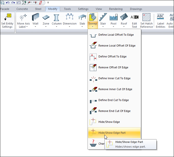Hide/Show Edge Part command defines local offset at the edge of the sweep edge, hides a part of the edge created by the inside cut commands, or displays the hidden part.