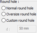 Round hole ![]() One of the normal, oversize or custom round hole types is chosen. If a custom round hole type is selected, the wanted value can be given. |