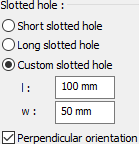 Slotted hole ![]() One of the short, long or custom slotted hole types is chosen. If a custom slotted hole type is selected, the wanted value can be given. |