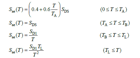 With the spectral acceleration coefficients obtained from AFAD depending on the coordinates, the horizontal elastic design spectrum Sae ( T ) is calculated according to the formula below . For the horizontal elastic design spectrum, it is represented by a total of 4 functions, different in each region, and shown in the graph below.