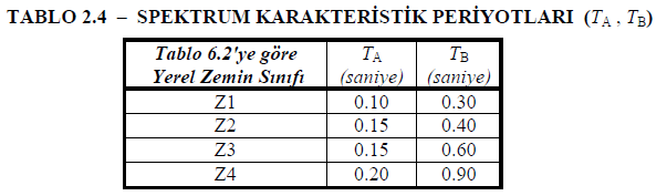 b- While the local ground class was four in DBYBHY 2007, it was expanded to six with TBDY 2018. In DBYBHY 2007, local ground conditions affect the corner periods T A and T B , but only the decreasing region of the spectrum (constant spectral velocity region) is affected by local ground conditions. In TBDY 2018, all regions of the spectrum are affected by local ground conditions with the F S and F 1 coefficients in TBDY Equation (2.1) . Below, DBYBHY 2007 corner periods are given according to local soil classes.