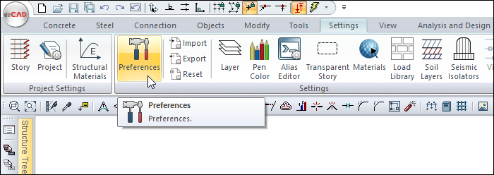 Click the Preferences icon in the settings tab in the ribbon menu .